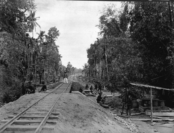 Pas aangelegde spoorweg bij Matang Koeli