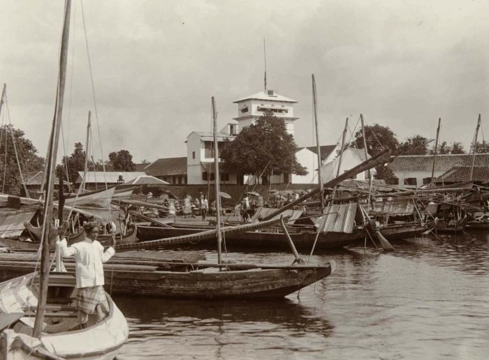 Prauwen in het Havenkanaal, Batavia